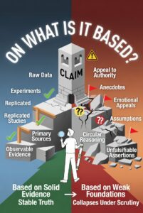 Does the claim rest on testable, observable evidence (data, experiments, direct records) or on appeals to authority, emotion, or “everyone knows this”?