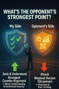Actively hunt for the best steelman of the opposing view (not the weakest strawman).