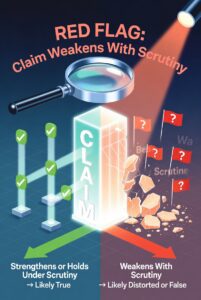 Red flag: The claim gets stronger with repetition or social pressure, but weaker under scrutiny.