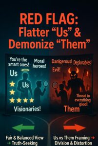 Red flag: The source flatters “us” and demonizes “them” without nuance.