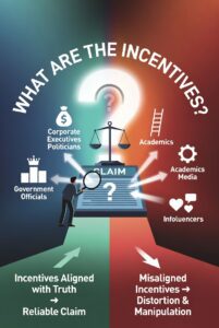Follow the incentives: Media, governments, corporations, activists, and even academics have skin in the game.