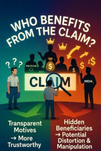 Who benefits if the claim is believed? (Money, power, status, clicks, ideological victory.)